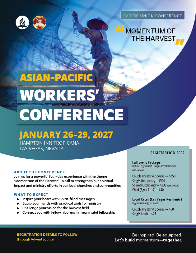 Join us for a powerful four-day experience designed to inspire, equip, and challenge Asian-Pacific pastors and spouses. In the spirit of Pentecost 2025 and the Sharing Jesus initiatives, this conference focuses on building Momentum of the Harvest—a call to strengthen our spiritual impact and ministry efforts in our local churches and communities.